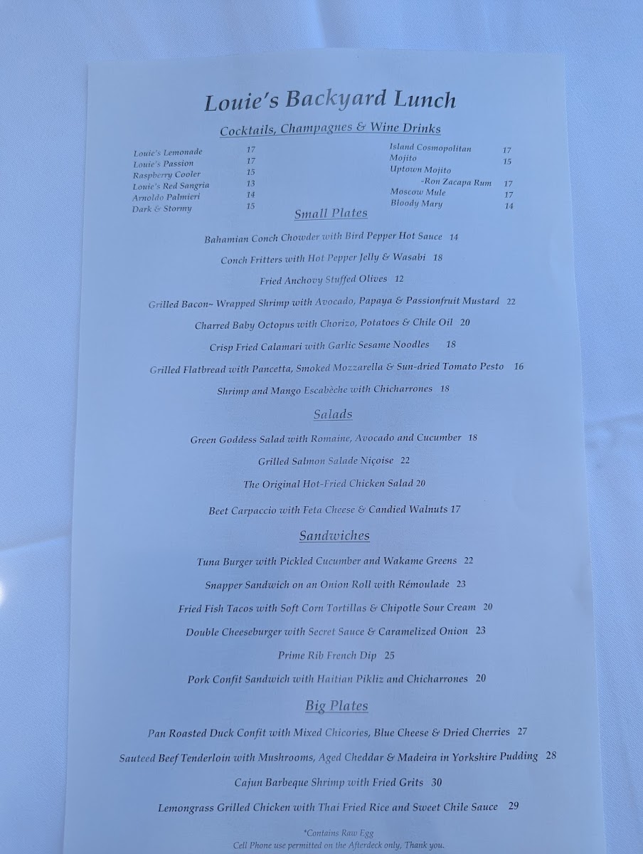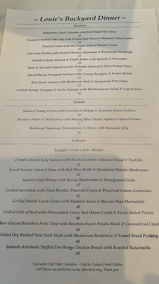 As you step into Louie's Backyard, you'll be greeted by a delightful fusion of upscale ambiance and relaxed charm. With an inviting oceanfront patio that stretches out over the water, diners can enjoy the gentle sea breeze while indulging in a memorable meal. The atmosphere is described as both elegant and cozy, perfect for romantic dinners or special gatherings with friends and family.