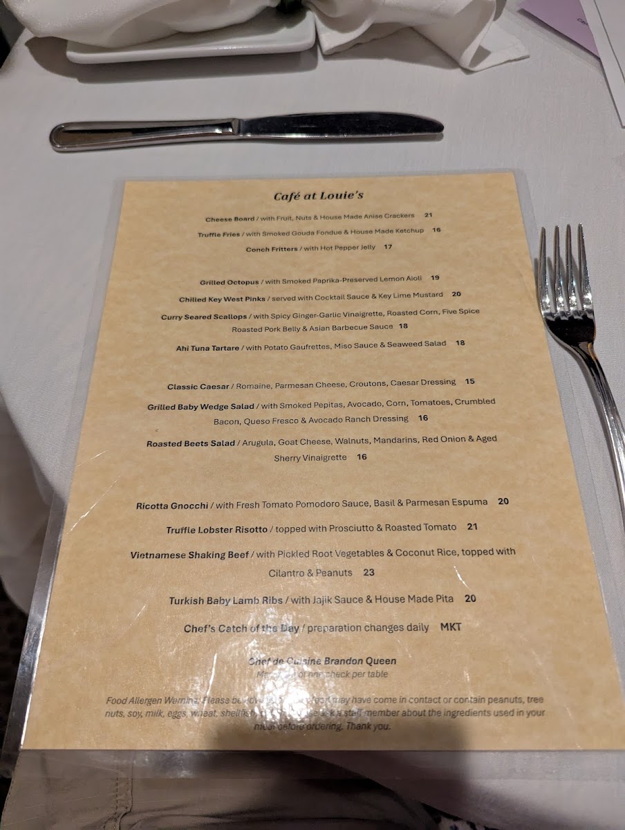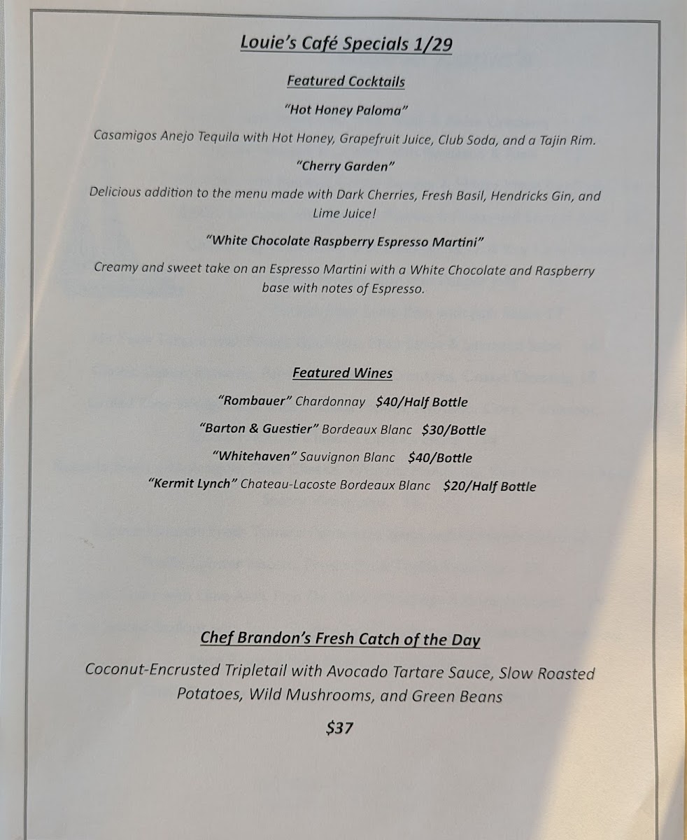 The menu boasts a variety of captivating dishes that cater to all tastes. Customer favorites include the Ancho Chili Crusted Local Grouper, which is beautifully paired with corn salsa, basmati rice, and green beans. Guests rave about the lamb chops and swordfish entrees, both of which are noted not just for their presentation but for their exquisite flavor profiles that leave an imprint on your palate. And for those with a sweet tooth, Louie's rendition of the Key Lime Pie is a must-try—while it may not be overly meringued, its tartness and delightful texture have earned it favorable rankings among visitors.